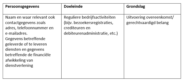 NHG verwerkt persoonsgegevens van leveranciers, relaties en stakeholders in het kader van de reguliere bedrijfsvoering. Dit kan contactpersonen betreffen die werkzaam zijn bij bedrijven of overheidsinstelling. Dit kan ook eenmansbedrijven betreffen. Bedrijfsgegevens van eenmansbedrijven kunnen worden aangemerkt als persoonsgegevens. Wij gebruiken deze gegevens in onze financiële administratie om de crediteurenadministratie te voeren. In voorkomende gevallen verwerken wij ook gegevens die in de Verklaring Omtrent het Gedrag aanwezig zijn en in de verklaring Deregulering Beoordeling Arbeidsrelaties. Deze gegevens dragen bij aan de risicobeheersing van onze crediteurenportefeuille.