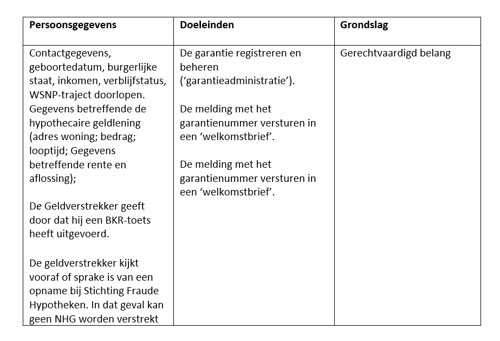 - De gegevens zijn noodzakelijk om onze belangen te beschermen en er is sprake van strafbare feiten die jegens NHG kunnen worden of zijn gepleegd;