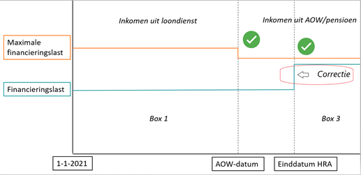 Resultaat: over 9 jaar en 11 maanden verschuift het aflossingsvrije leningdeel van box 1 naar box 3. Daar moet in de toetsing bij de aanvraag rekening mee gehouden worden: